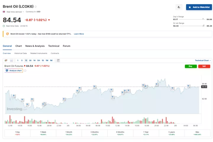 Το Brent είχε εκτιναχθεί σχεδόν 5% στην προηγούμενη συνεδρίαση, φθάνοντας στο υψηλότερο επίπεδο από τον Ιούλιο του 2024, ενώ το WTI είχε σημειώσει άνοδο άνω του 8%.