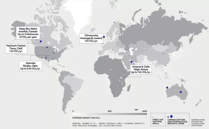Η επιστήμη γνωρίζει ότι υπάρχουν επαρκείς υπόγειες «αποθήκες» για να φιλοξενήσουν τρισεκατομμύρια τόνους CO₂ για αιώνες. Σήμερα, όμως, μόλις 51 εκατ. τόνοι θάβονται κάθε χρόνο – και σχεδόν όλοι προέρχονται από βιομηχανικές εκπομπές, όχι από τον αέρα. Η συμβολή της DAC παραμένει απειροελάχιστη.