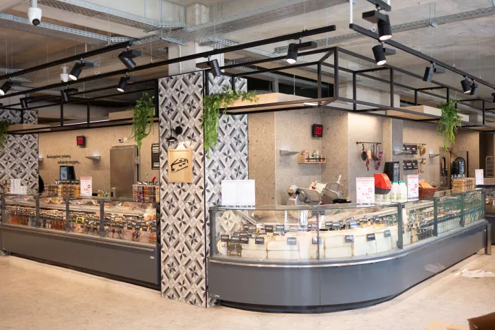 Το κατάστημα αναπτύσσεται σε ισόγειο χώρο 1.500 τ.μ., ενώ υποστηρίζεται από υπόγεια αποθήκη 500 τ.μ., διασφαλίζοντας την επιχειρησιακή του επάρκεια. Η λειτουργία του βασίζεται σε ένα μοντέλο που συνδυάζει την εξυπηρέτηση με την τεχνολογία, καθώς διαθέτει επτά ταμεία και τέσσερα σημεία self-checkout.