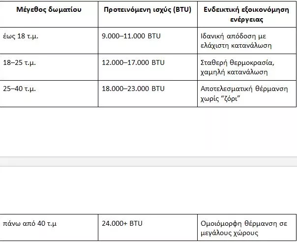 Το πρώτο βήμα είναι να ταιριάξεις το κλιματιστικό με τον χώρο σου. Η ισχύς της συσκευής, δηλαδή τα BTU, καθορίζουν το πόσο γρήγορα και αποδοτικά θα ζεσταίνει το δωμάτιο. Αν πάρεις μικρότερο απ’ ό,τι χρειάζεσαι, θα δουλεύει στο φουλ συνέχεια. Αν πάρεις πολύ μεγαλύτερο, θα ανοιγοκλείνει συχνά και πάλι θα καταναλώνει παραπάνω. Η σωστή αναλογία λοιπόν είναι το κλειδί της οικονομίας.