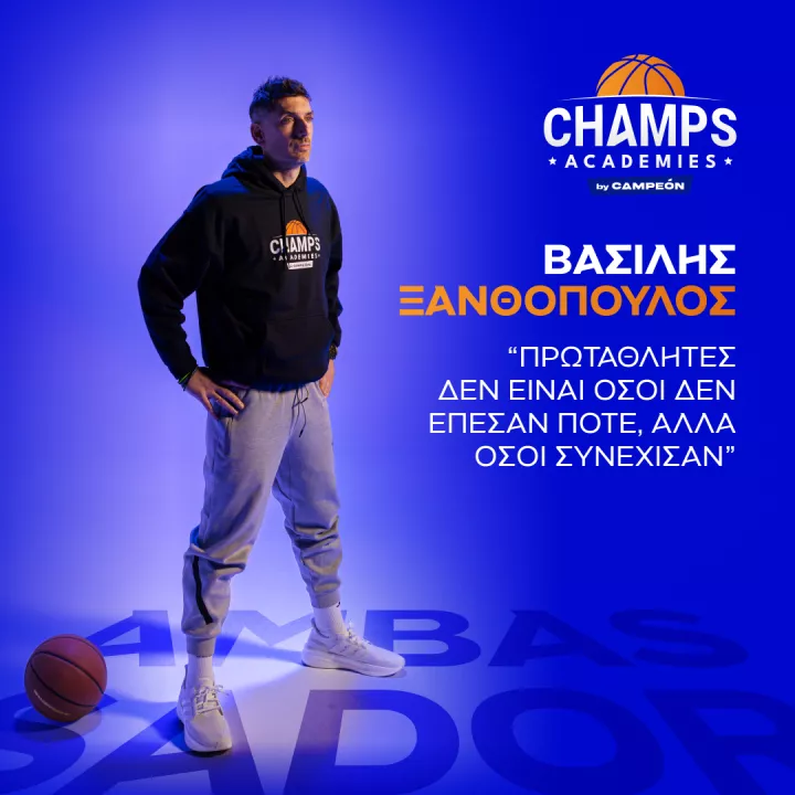 «Θα χάσεις ευκαιρίες. Θα κάνεις λάθη. Αλλά το παιχνίδι θα συνεχιστεί. Δεν χρειάζεται να είσαι πάντα πρώτος. Χρειάζεται να είσαι πάντα εκεί. Γιατί πρωταθλητές δεν είναι όσοι δεν έπεσαν ποτέ. Αλλά όσοι συνέχισαν.» τονίζει ο Βασίλης Ξανθόπουλος στο βίντεο, λειτουργώντας ως πρότυπο για τους νεαρούς αθλητές και ενισχύοντας παράλληλα τον αναπτυξιακό και παιδαγωγικό χαρακτήρα του Champs Academies.