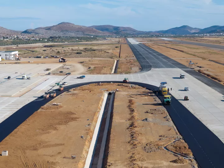 Η τελική επιφάνεια των οδοστρωμάτων προσγείωσης/απογείωσης/στάθμευσης έχει φτάσει στο 96%. Βάζουν κάποια ερείσματα στα πλάγια και μετά ολοκληρώνεται. Αξίζει να αναφέρουμε ότι χρησιμοποιήθηκαν μηχανήματα τελευταίας τεχνολογίας, ειδικά το μηχάνημα που τοποθετεί το σκυρόδεμα για την ισομερή κατανομή του, όπως υπογράμμισε ο Βαγγέλης Μασούρας, Αντιπρόεδρος της ΤΕΡΝΑ.