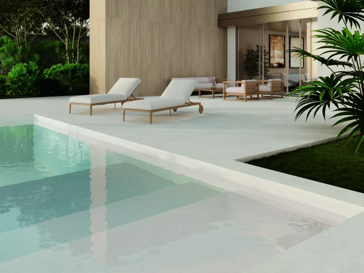 Κάποια από τα σημαντικότερα χαρακτηριστικά της σειράς πλακιδίων είναι ότι προσφέρει αντιολισθητική επιφάνεια υψηλών προδιαγραφών (R11), εξαιρετική αντοχή σε παγετό και αποδεδειγμένη ανθεκτικότητα στην υγρασία. Επιπρόσθετα για τον χώρο της πισίνας υπάρχουν διαθέσιμα: σκαλοπάτι (R12) και σχάρα υπερχείλισης (R12) πισίνας.
