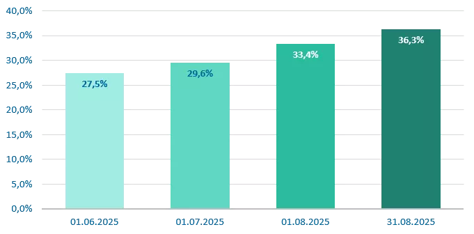 Από την εικόνα του χαρτοφυλακίου σε ισχύ των ανωτέρω επιχειρήσεων, το ποσοστό επί του συνόλου των συμβολαίων που διαθέτει την κάλυψη των φυσικών φαινομένων*, εξελίσσεται ως εξής: