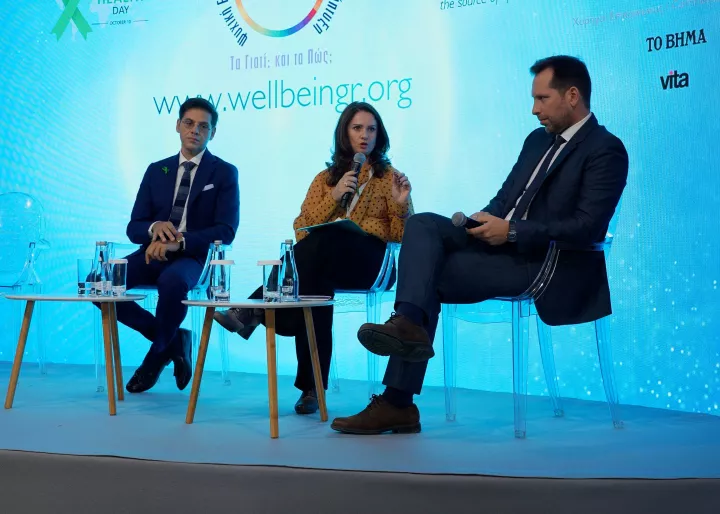 Στη συζήτηση με θέμα «Η ψυχική υγεία και ευεξία των εργαζομένων εν μέσω παγκόσμιων προκλήσεων», η Ευτυχία Κασελάκη, Εταίρος, Επικεφαλής Organization, Change and People Consulting, EY Ελλάδος, σε συζήτηση με την Τατιάνα Τούντα, Πρόεδρο & CEO της Hellas EAP, παρουσίασε τα ευρήματα της τελευταίας έρευνας για την ψυχική υγεία και την ευεξία (wellbeing) των εργαζόμενων στη χώρα, που πραγματοποίησαν από κοινού η EY Ελλάδος, η Hellas EAP και το Εργαστήριο Πειραματικής Ψυχολογίας του Τμήματος Ψυχολογίας του Εθνικού και Καποδιστριακού Πανεπιστημίου Αθηνών.