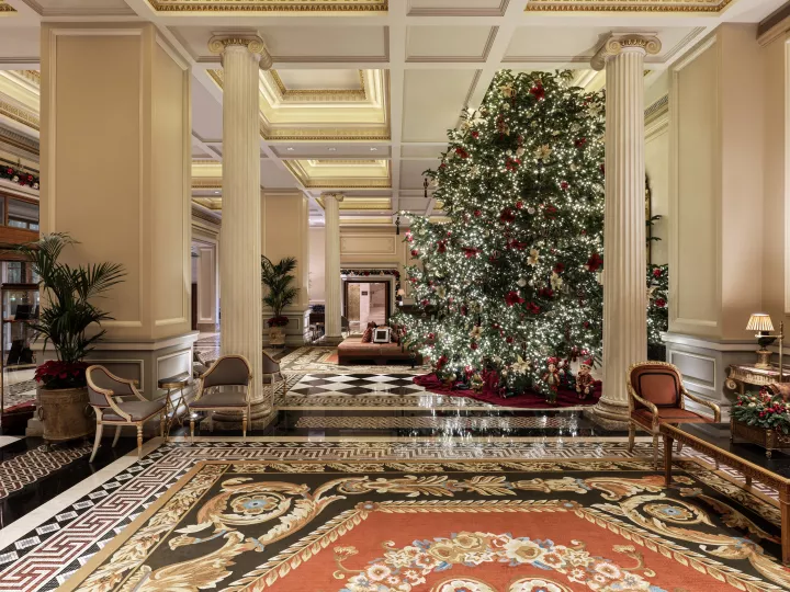 Στην είσοδο της «Μεγάλης Κυρίας των Αθηνών», οι επιβλητικοί Καρυοθραύστες καλωσορίζουν τους επισκέπτες σε μια γιορτινή εμπειρία υψηλής αισθητικής. Στο Lobby, το χριστουγεννιάτικο δέντρο ύψους 8 μέτρων ακτινοβολεί λάμψη, αναδεικνύοντας τη μοναδική εορταστική ατμόσφαιρα του ξενοδοχείου.