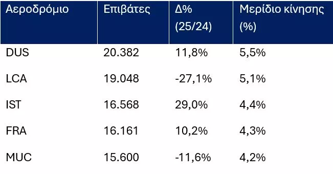 Τα 5 κορυφαία αεροδρόμια, βάσει διεθνούς επιβατικής κίνησης: