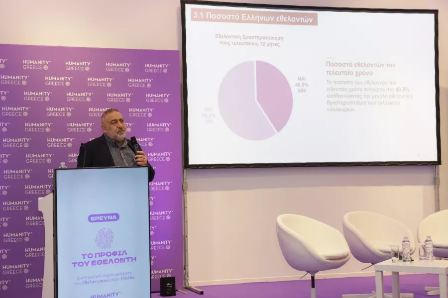 Σε μια αίθουσα γεμάτη από ανθρώπους που αποτελούν «συλλέκτες στιγμών προσφοράς», παρουσιάστηκαν τα αποτελέσματα μιας εκτεταμένης ποσοτικής και ποιοτικής καταγραφής, η οποία βασίστηκε σε 2.333 συμμετοχές. Μια πρωτοβουλία που έρχεται να καλύψει ένα σημαντικό κενό, καθώς μέχρι σήμερα η Ελλάδα δεν διέθετε μια ολοκληρωμένη μελέτη που να χαρτογραφεί το προφίλ, τα κίνητρα και τα εμπόδια της εθελοντικής συμμετοχής.