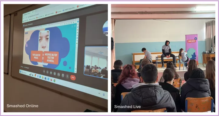 Απευθύνεται σε μαθητές ηλικίας 13-17 ετών που παρακολουθούν τις ιστορίες τριών εφήβων, του Μίλτου, της Τζωρτζίνας και του Φάνη και τις συνέπειες που έχει η κατανάλωση αλκοόλ στην υγεία, την ασφάλεια, τις σχέσεις και τις φιλοδοξίες τους. Με βιωματική αφήγηση και ενεργή διάδραση, οι μαθητές καλούνται να αναρωτηθούν «Τι θα έκανα εγώ στη θέση τους;» και να εξετάσουν πραγματικά σενάρια, αναπτύσσοντας δεξιότητες υπεύθυνης λήψης αποφάσεων και αντίστασης στην πίεση των συνομηλίκων. Το Smashed δεν υποδεικνύει συμπεριφορές, αλλά ενισχύει την κριτική σκέψη, την αυτογνωσία και την υπευθυνότητα των μαθητών.