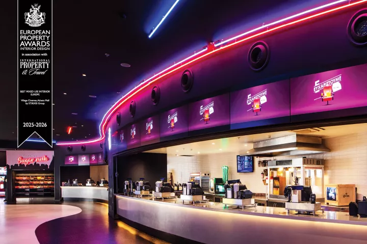Η Stirixis Group τιμήθηκε για το έργο Village Cinemas στο The Mall Athens με το κορυφαίο βραβείο για το Design του Καλύτερου Χώρου Μικτής Χρήσης στην Ευρώπη.