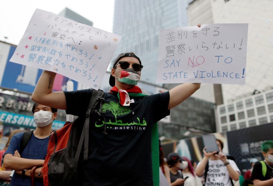 Πιο περιορισμένης έκτασης ήταν οι διαδηλώσεις στην Ασία. Στο Τόκιο, οι συγκεντρωμένοι διαμαρτύρονταν για την κακομεταχείριση, όπως λένε, ενός Κούρδου τον οποίο σταμάτησαν για έλεγχο οι αστυνομικοί ενώ οδηγούσε και τον έριξαν στο έδαφος. Οι διοργανωτές εξέφρασαν επίσης την υποστήριξή τους στο κίνημα Black Lives Matter. «Θέλω να δείξω ότι υπάρχει ρατσισμός στην Ιαπωνία τώρα», είπε η 17χρονη μαθήτρια Ουακάμπα.