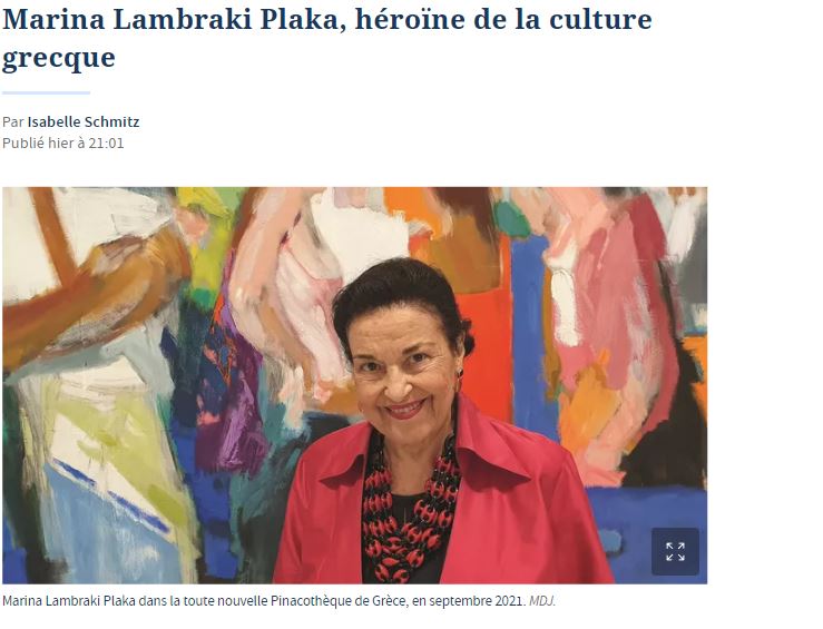 Σε άλλο δημοσίευμα της ίδιας εφημερίδας με τίτλο "Η ψυχή της σύγχρονης Ελλάδας" φιλοξενείται αφιέρωμα για τη νέα Εθνική Πινακοθήκη, «όπου μπορεί να δει κανείς την επανένωση της Ευρώπης και της σύγχρονης Ελλάδας», ενώ υπογραμμίζεται πως το έργο αυτό έχει ένα πρόσωπο, αυτό μιας εξαιρετικής γυναίκας, της Μαρίνας Λαμπράκη-Πλάκα.