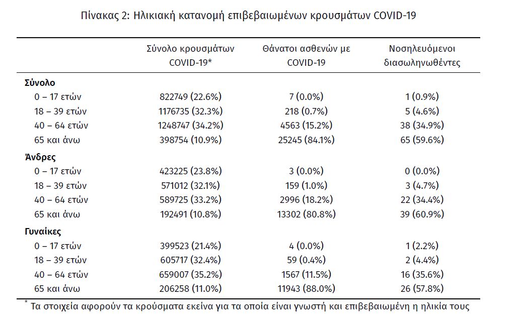 Οι νέοι θάνατοι ασθενών με COVID-19 είναι 12, ενώ από την έναρξη της επιδημίας έχουν καταγραφεί συνολικά 30.033 θάνατοι. 2 Το 95.6% είχε
