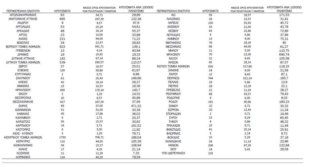 Κατανομή ανακοινωθέντων εγχώριων κρουσμάτων: Από το σύνολο των 9.109 νέων κρουσμάτων του νέου ιού στη χώρα 1 είναι εισαγόμενο