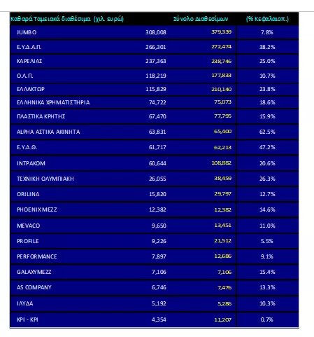 Οι 20 εταιρίες που έχουν το υψηλότερο αρνητικό δανεισμό (Καθαρό Ταμείο)
