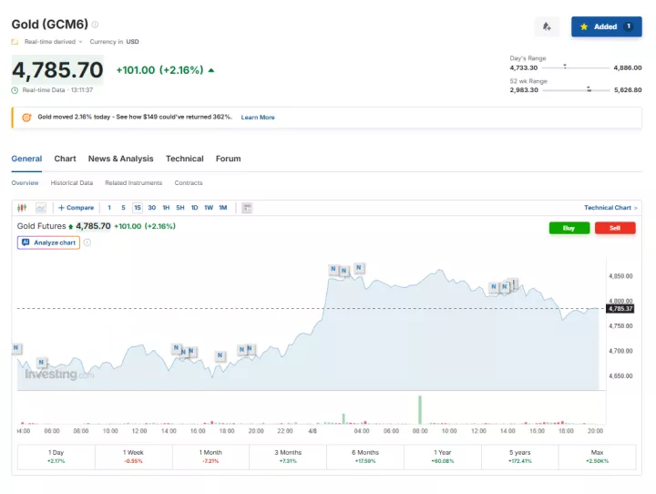 «Η άνοδος του χρυσού πάνω από τα 4.800 δολάρια αντανακλά μια αναπροσαρμογή του κινδύνου, παρά μια πλήρη αλλαγή καθεστώτος», δήλωσε ο Αχμάντ Ασίρι, στρατηγικός αναλυτής στην Pepperstone.