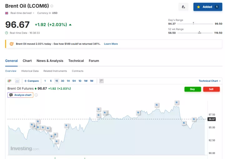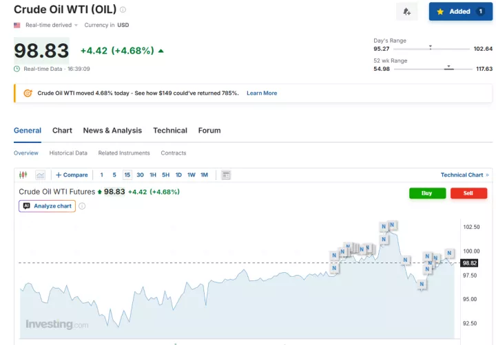 Χαρακτηριστικά, λίγο πριν τις 23:39 ώρα Ελλάδας, τα futures του Brent κινούνται ανοδικά κατά 2,03% στα 96,67 δολάρια το βαρέλι, ενώ το αμερικανικό αργό σημειώνει άνοδο 4,68% στα 98,83 δολάρια το βαρέλι.