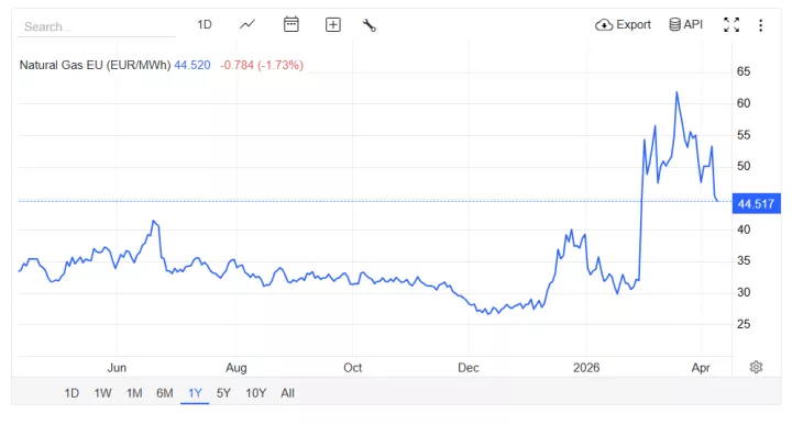 Μετά τη μεγάλη πτώση τη Μ. Τετάρτη, σήμερα τα futures του αερίου κινούνται καθοδικά κατά 1,73% με την τιμή να διαμορφώνεται στα 44,51 ευρώ ανά μεγαβατώρα.