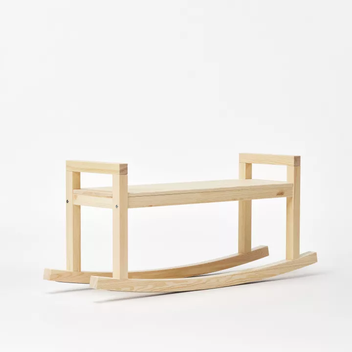 Το παγκάκι-κούνια αποτελεί την πιο καθαρή έκφραση της παιχνιδιάρικης λειτουργικότητας. Κάνει ακριβώς αυτό που δείχνει: σε λικνίζει απαλά από τη μία πλευρά στην άλλη, ενώ λειτουργεί εξίσου καλά και ως απλό παγκάκι. Μπορείς να δοκιμάσεις να καθίσεις ακίνητος αν θέλεις, αλλά η καμπυλωτή του βάση έχει άλλη άποψη. Κατασκευασμένο από μασίφ πεύκο με όλα τα φυσικά χαρακτηριστικά του, σύμφωνα με το σήμα κατατεθέν του σκανδιναβικού design, τα ανθεκτικά στηρίγματα του αντέχουν την επαναλαμβανόμενη χρήση.