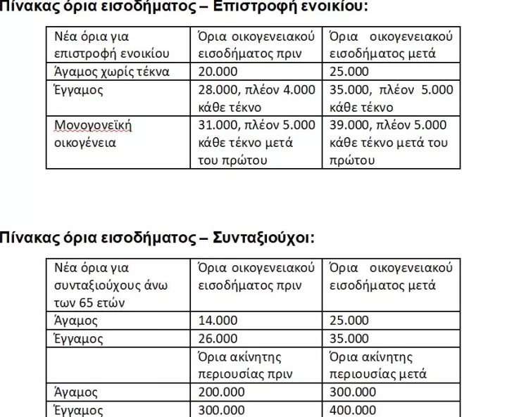 Αύξηση ορίων εισοδήματος επιστροφής ενοικίου