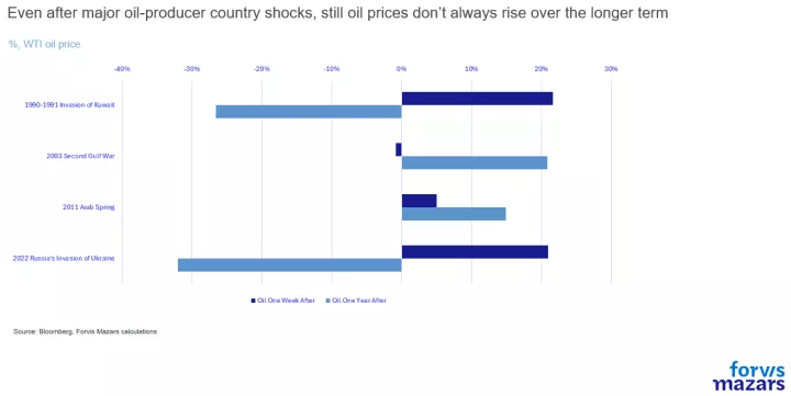 - Ιστορικά, υπάρχει χαμηλή μακροπρόθεσμη συσχέτιση μεταξύ διαταραχών στις χώρες παραγωγούς πετρελαίου και τιμών πετρελαίου