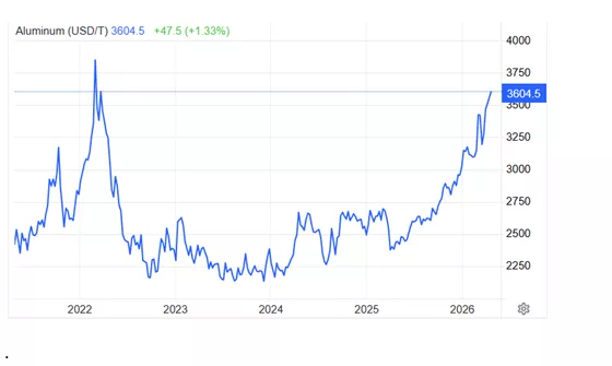📈 Οι φόβοι για την επάρκεια της προσφοράς, λόγω των επιπτώσεων από τη σύρραξη ΗΠΑ–Ισραήλ με το Ιράν, τροφοδότησαν ισχυρό ράλι στο LME, με την τιμή του αλουμινίου να αγγίζει στις 16 Απριλίου υψηλό τετραετίας στα 3.672 δολάρια ανά τόνο.