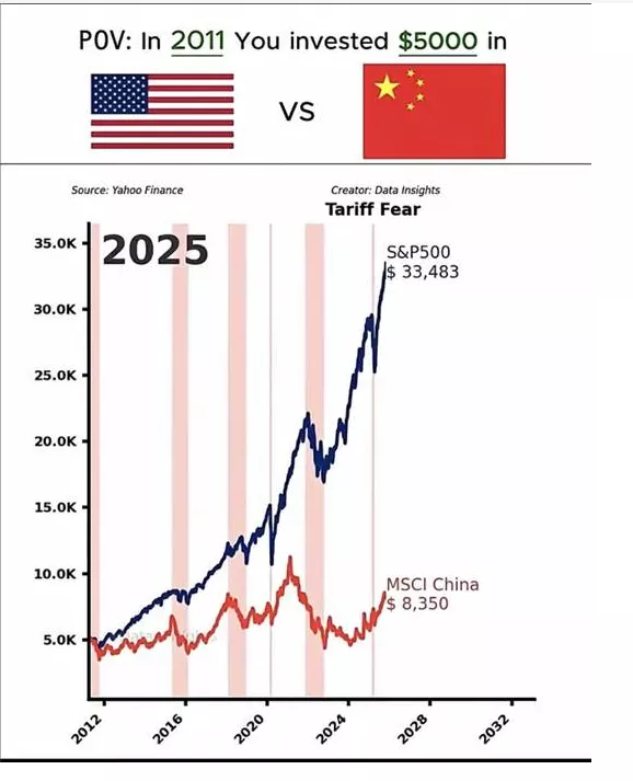 📊Η Μεγάλη Διαφορά ΗΠΑ – Κίνας στις Αγορές από το 2011