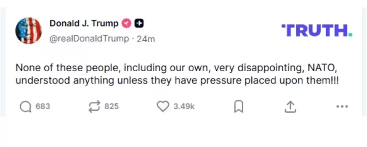 Ο Αμερικανός πρόεδρος Ντόναλντ Τραμπ, ο οποίος αργά το βράδυ της Τετάρτης είχε συνάντηση με τον Γενικό Γραμματέα του ΝΑΤΟ Μαρκ Ρούτε, με ανάρτησή του στο Truth Social κατηγόρησε τη Συμμαχία ότι δεν ήταν ποτέ στο πλευρό των ΗΠΑ, όταν αυτές το χρειάστηκαν, ενώ υπογράμμισε ότι δεν θα είναι ούτε στο μέλλον.