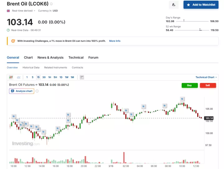 Απώλειες καταγράφει το Brent, καθώς οι traders ανησυχούν για τις εξελίξεις γύρω από τον πόλεμο, που μαίνεται στη Μέση Ανατολή για 17η μέρα.
