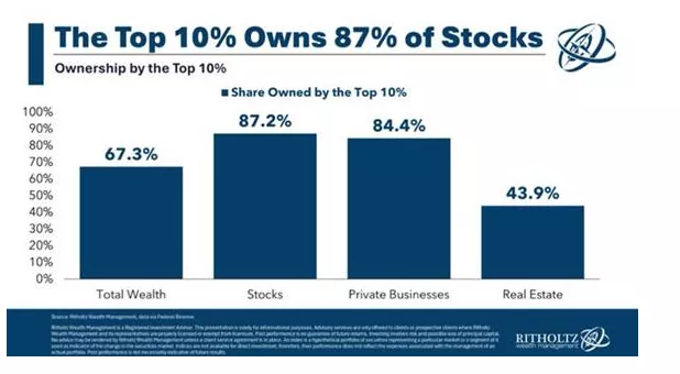 Το 10% των αμερικανικών νοικοκυριών κατέχει τα 2/3 του συνολικού πλούτου (67,3%), αλλά η ανισότητα εκτοξεύεται όταν δούμε τι είδους περιουσία κατέχουν.