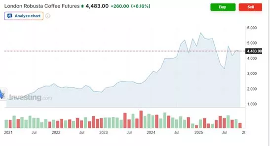 Τα London Robusta Coffee Futures είναι τα συμβόλαια μελλοντικής εκπλήρωσης για καφέ Robusta που διαπραγματεύονται στο ICE Europe (Λονδίνο) και αποτελούν το παγκόσμιο benchmark για τη συγκεκριμένη ποικιλία καφέ.