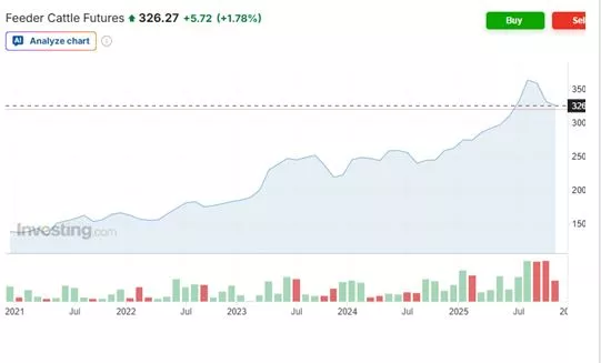 Τα Feeder Cattle Futures είναι συμβόλαια μελλοντικής εκπλήρωσης (futures) που διαπραγματεύονται στο CME (Chicago Mercantile Exchange) και αφορούν νεαρά βοοειδή πάχυνσης (feeder cattle), δηλαδή ζώα ~650–850 λίβρες που δεν έχουν ακόμη φτάσει στο στάδιο του “live cattle” για σφαγή.
