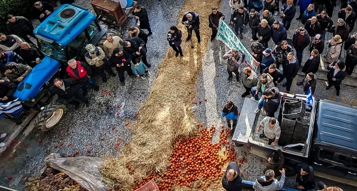 Αγρότες απέκλεισαν κτίριο της Περιφέρειας Καβάλας και πέταξαν γάλα και άχυρα