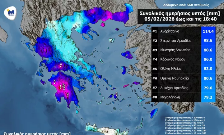 Meteo: Στην Ανδρίτσαινα το μεγαλύτερο ύψος βροχής - Εκ νέου συστάσεις της Πολιτικής Προστασίας