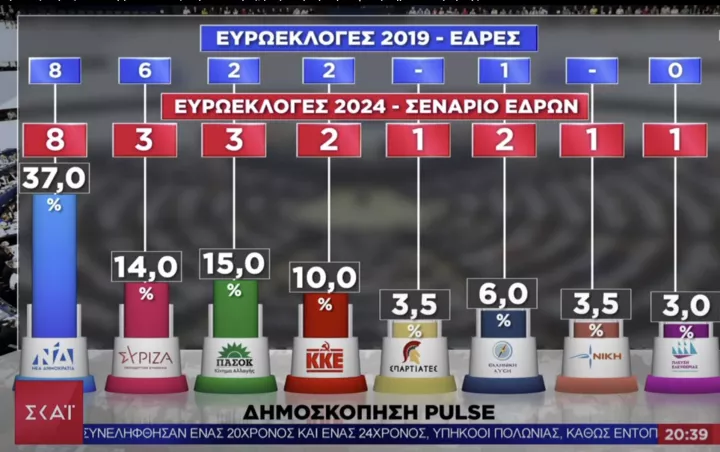 Pulse: Τα σενάρια για τις έδρες των κομμάτων στις ευρωεκλογές