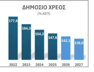 Το χρέος που σώρευε επί δεκαετίες το κράτος, με την έγκριση της εκάστοτε Βουλής, δηλαδή χωρίς πρακτικώς διαφωνίες κανενός, προκειμένου να καλύπτει το ετήσιο έλλειμμα και να πληρώνει τους πρόσθετους τόκους, έχει τεθεί υπό έλεγχο. Η αναλογία του χρέους προς την «πίτα» που δημιουργεί ο εργαζόμενος πληθυσμός της χώρας μικραίνει. Μέχρι όμως το 2032 η προσπάθεια θα πρέπει να συνεχίζεται χωρίς την παραμικρή στραβοτιμονιά.