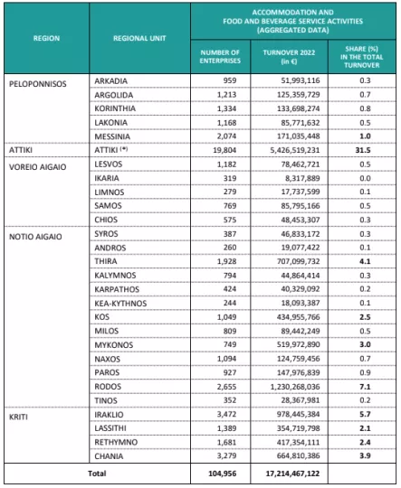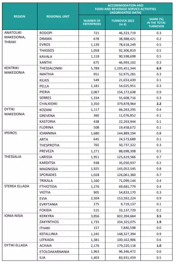 Τη χαρτογράφηση της εξέλιξης του κύκλου εργασιών των επιχειρήσεων που δραστηριοποιούνται στους κλάδους των Καταλυμάτων και των Υπηρεσιών Εστίασης παρουσίασε η Ελληνική Στατιστική Αρχή (ΕΛΣΤΑΤ).