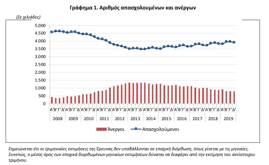 ▪ Ο αριθμός των απασχολουμένων ανήλθε σε 3.901.791 άτομα και των ανέργων σε 786.416 άτομα.