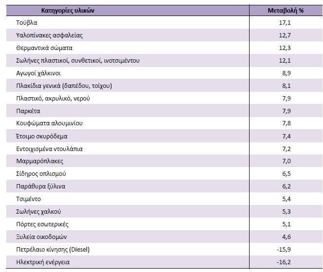 Αύξηση 7,1% σημείωσε ο Γενικός Δείκτης Τιμών Υλικών Κατασκευής Νέων Κτηρίων Κατοικιών τον Ιούλιο σε σύγκριση με τον αντίστοιχο δείκτη του Ιουλίου 2022, έναντι αύξησης 12,0% που σημειώθηκε κατά τη σύγκριση των αντίστοιχων δεικτών του έτους 2022 με το 2021, όπως ανακοίνωσε σήμερα η ΕΛΣΤΑΤ.