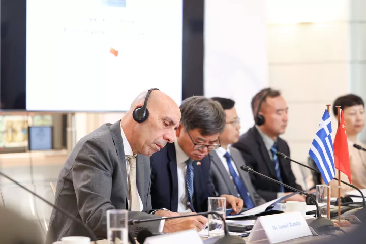Ο Υφυπουργός Εξωτερικών, κ. Χάρης Θεοχάρης, αρμόδιος για την Οικονομική Διπλωματία και την Εξωστρέφεια, καλωσόρισε την κινεζική αντιπροσωπεία, και χαρακτήρισε τη συνάντηση ως πραγματικό βήμα ενίσχυσης των επιχειρηματικών δεσμών, με στόχο συμπράξεις, επενδύσεις και ανταλλαγή τεχνογνωσίας, υπηρετώντας τη Νέα Εθνική Στρατηγική Εξωστρέφειας. Κάλεσε την κινεζική πλευρά να δει την Ελλάδα ως αξιόπιστο εταίρο και πύλη προς την Ευρώπη, έτοιμο να συνδημιουργήσει αξία και να ενισχύσει την καινοτομία. Τόνισε την επιθυμία για περισσότερες ελληνοκινεζικές συνεργασίες σε βιομηχανικά πάρκα, σε ανανεώσιμες πηγές ενέργειας, σε έξυπνα logistics, καθώς και σε έρευνα και τεχνολογία, στη διασύνδεση της αγροδιατροφής με την καινοτομία και το εμπόριο, «δημιουργώντας επιπλέον γέφυρες μεταξύ της ποιοτικής ελληνικής παραγωγής και της δυναμικής κινεζικής αγοράς».