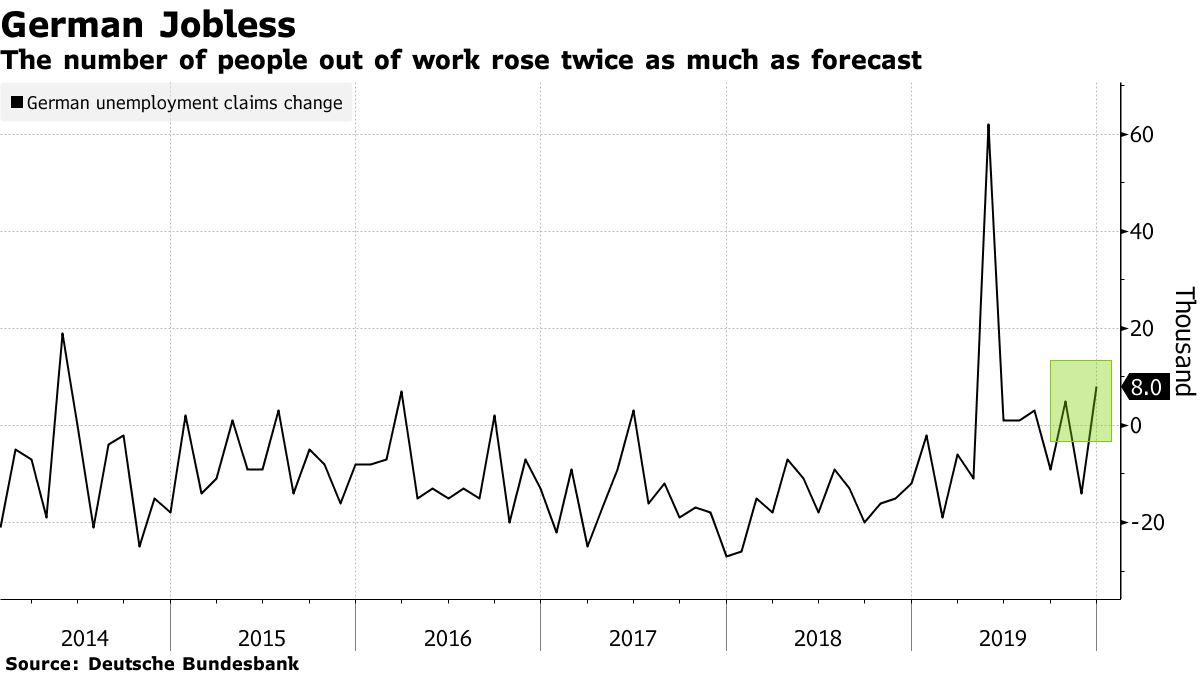 Αύξηση κατέγραψε η ανεργία στην Γερμανία στα τέλη του 2019, σε μια ένδειξη ότι η μεγαλύτερη οικονομία της Ευρώπης παραμένει σε καθεστώς αβεβαιότητας την ώρα που ο κατασκευαστικός κλάδος παραμένει σε χαμηλά επίπεδα και η κυβέρνηση αντιστέκεται στις εκκλήσεις για δημοσιονομική τόνωση.