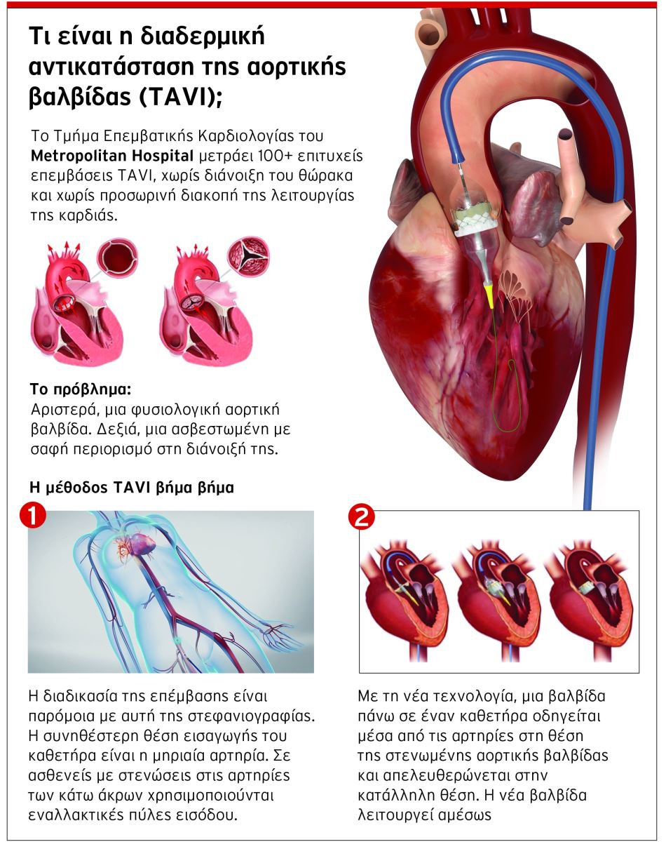 To Metropolitan Hospital, ένα από τα λίγα πιστοποιημένα κέντρα για TAVI στη χώρα µας, μετράει 160 επιτυχείς επεμβάσεις χωρίς διάνοιξη του θώρακα και χωρίς διακοπή της λειτουργίας της καρδιάς.