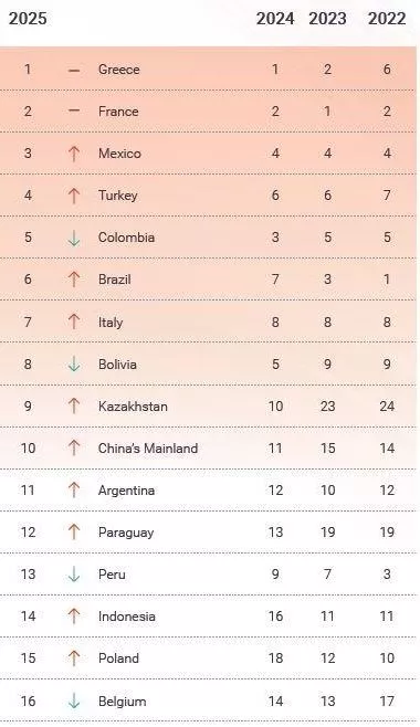 Όπως βλέπουμε και στον ακόλουθο πίνακα η Ελλάδα από την 6η θέση που κατείχε το 2022, ανέβηκε στην 2η θέση το 2023 και ακολούθως αναρριχήθηκε στην κορυφή το 2024 και διατηρεί την πρωτιά και το 2025.