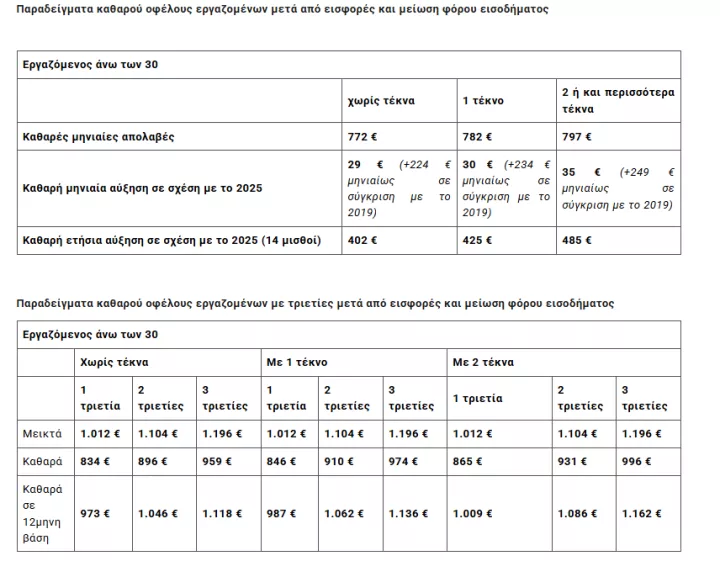 Από το 2019, η σωρευτική αύξηση αγγίζει τα 270 ευρώ μηνιαίως ή 3.780 ευρώ ετησίως, 4,2 έως 5,8 μισθοί παραπάνω, δηλαδή 41,54% συνολική αύξηση από το 2019.