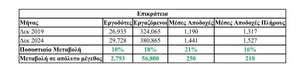 - οι εργαζόμενοι σε μεταποιητικές επιχειρήσεις αυξήθηκαν κατά 56.800, από 324.065 σε 380.865 (+18%).