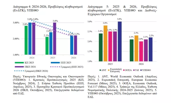 Για το 2026, το ΥΠΕΘΟ αναμένει αποκλιμάκωση των πιέσεων και «βλέπει» τον πληθωρισμό 2,2%.