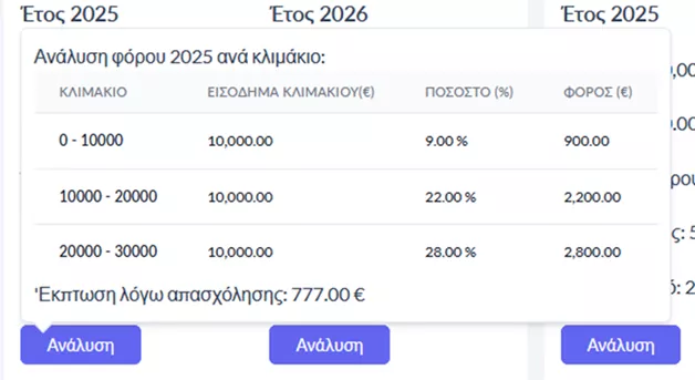 Οθόνη 3: Ανάλυση Κλιμακίων Φόρου Εισοδήματος