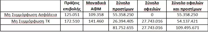 Το συνολικό ποσό των προστίμων και οφειλών ανέρχεται σε 109,5 εκ. ευρώ.