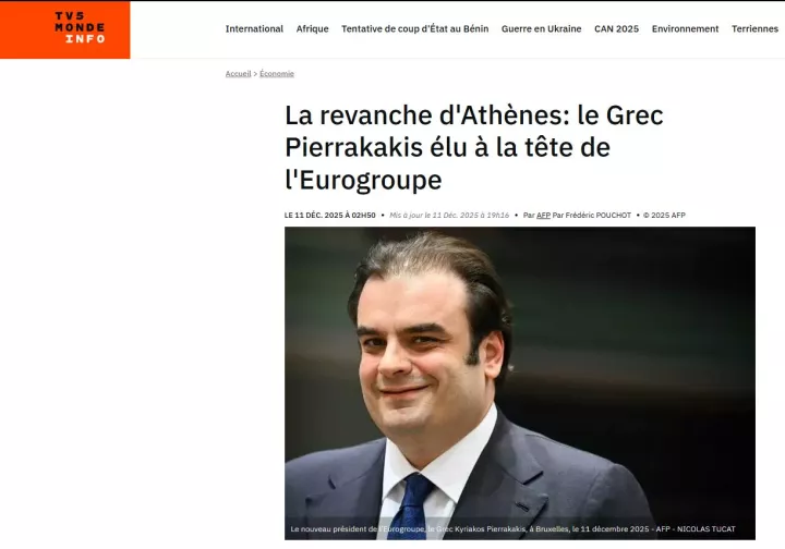 Μια ημέρα μετά την ιστορική επικράτηση του Έλληνα υπουργού Οικονομικών, Κυριάκου Πιερρακάκη, απέναντι στον Βέλγο αντίπαλό του για την προεδρία του Eurogroup, τα διεθνή ΜΜΕ δημοσιεύουν εγκωμιαστικά σχόλια, υπογραμμίζοντας ότι η εξέλιξη αυτή «σηματοδοτεί την επιστροφή της Ελλάδας από μια περίοδο κρίσης στην καρδιά της ευρωπαϊκής οικονομικής πολιτικής».