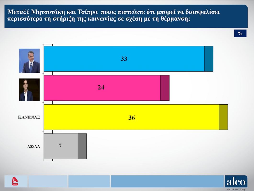 Ο Κυριάκος Μητσοτάκης συγκεντρώνει 32% έναντι 22% του Αλέξη Τσίπρα πως μπορεί να αντιμετωπίσει καλύτερα την ακρίβεια.